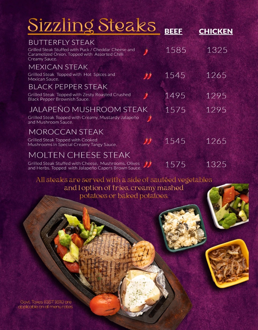 Turning to the food, the signature steak was a sizzling, juicy delight, and the mashed potatoes were spot-on. The Thai & Chinese dishes also have fabulous taste, in Thai style chicken with cashew nuts, onions, carrots & capsicum cooked in special Thai sauce, they are served with garlic sauce, really lacking in other restaurants. Kudos to their service.